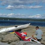 Jag packar kajaken för avfärd efter rast