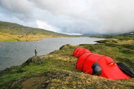 Ser ut att vara en härlig lägerplats. Röda tält gör sig nästan alltid bra på bild.