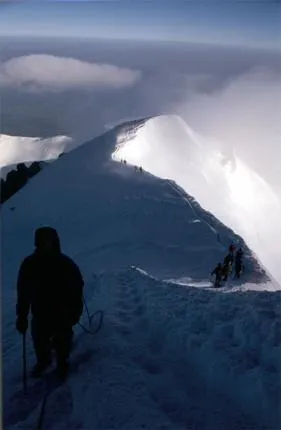 På väg upp mot toppen på Mont Blanc. Vandringen upp längst kammen är otroligt vacker! Jag nådde toppen kl.07.15 och möttes av en fantastisk utsikt.