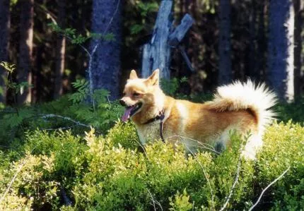 På promenad i norrlandsskogen med finnspetsen Ami.