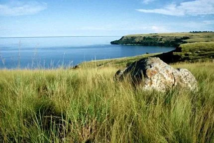 Vacker kust längs Victoriasjön; Kageraregionen i Tanzania.