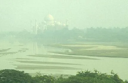 Bilden är tagen från Agra Fort bort mot Taj Mahal.