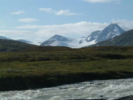 Bilden är tagen österifrån, dvs från svenska sidan. Man ser tydligt Suliskongens mäktiga pyramid.