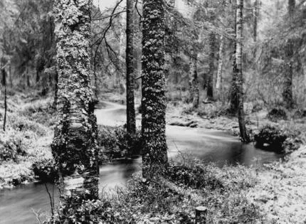 Tagen vid en bäck som jag cyklar förbi på väg till skolan.