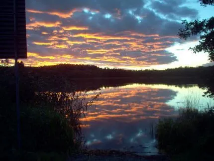 Vist bilden kan se häftig ut vid första hastig titt, men det försvinner snabbt. Spegelbilden och himlen är det inget att klaga på. Däremot det som är mörkt, det är alldeles för mörkt och det saknas något i bilden som är intressant att fästa blicken på, skylten i vänsterkanten borde inte varit med. Men vist kan man vara imponerad vi första titten men bilden är inte värd en 5:a. Mitt försalag till bättre bild är att gå närmre vassen till vänster om strandlinjen och sätta på en upplätningsblixt och där med få en intressantare och bättre bild.
