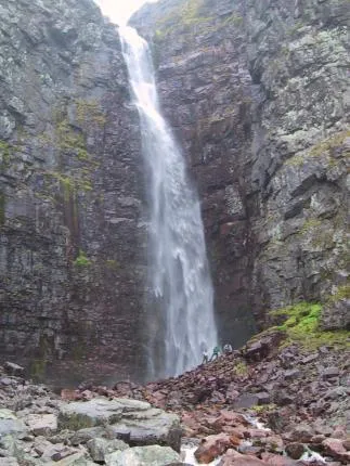 Fångat bra på bild,vattenfallet som störtar ner från hög höjd.