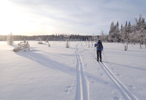 En tur i för mig nytt område vid Middagsfjället. Jättefint skidföre. Lite kallt i vinden.