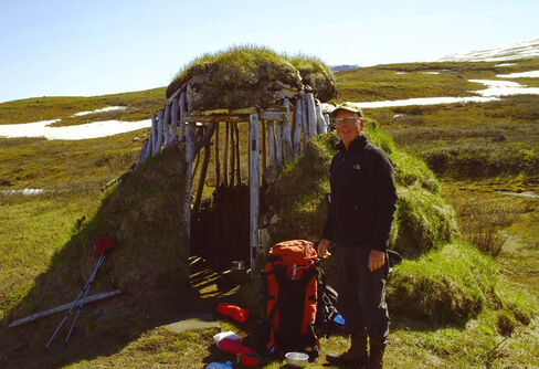 Terrängen norr om Mihkájåhkå var till att börja med ganska lättvandrad. Inga videbuskar utan en blandning av översilningsområden, stenig hed och ...