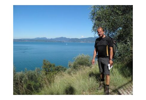 Efter en något svalare natt i bergen begav vi oss åter ner mot Gardasjön för att vandra över Monte Luppia. Här nere var det varmt. Närmare bestämt en ...
