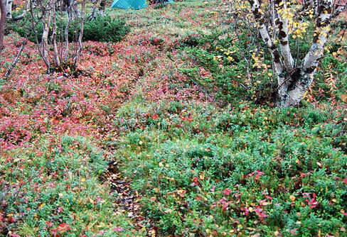 Sträckan lägret till renvaktarsugan vid Sluggajåhkka var visserligen inte stig hela vägen, men oftast, förutom någon del underbart lågt och torrt ...