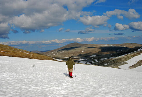 Vi tog ut kompassriktning nordöst från Slierjgetjåkkhå och jag försökte förklara för Sundip att det är bättre på alla sätt och vis att försöka hålla ...