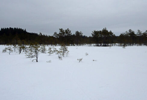 Mellan Ramnäs och Surahammar ligger Rövallsmossen Stingsmossen Naturreservat. Just nu är skaren hård och det går fint att äka skidor.