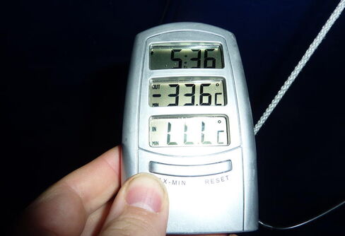Sov i hängmattan i natt och hade som lägst -33,6 grader!