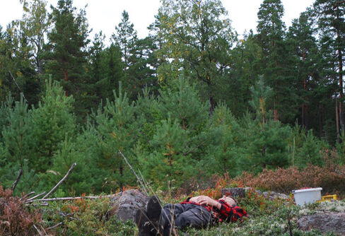 Hinken är full med lingon. Det doftar av solvarmat kråkbärsris. En liten spräcklig gräshoppa spelar i den rödaktiga kruståteln. Det susar svagt från ...
