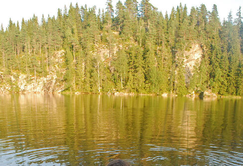 Ett ensamt fjäll som sticker upp ur skogen som en hajfena, en ...