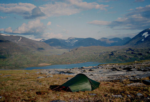 (Tältplats ovanför Alesjaure vid Tjålmevagge Augusti 2009)