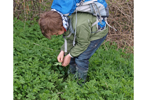 Her er Elias, en miniloffer på 7 år, som eter gratis mat: skvallerkål, eller som svenskene kaller den, kirskål. Dette er en grønnsak som ble ...