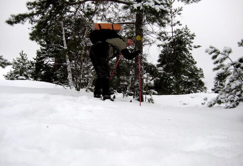 Jag tog, dom av kungen godkända, skidorna under armen och satte av mot skogsbrynet....
