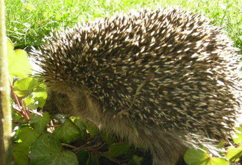 Idag fick jag fint besök i min trädgård - en igelkott kom och hälsade på! Han satt en stund i murgrönsplantan, verkade lite blyg men gick änå med på ...