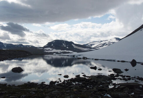Vi "panikvaknade" denna morgon av gassande solvärme. Det var bara att kränga sig ur sovsäck och tält och traska rakt ner i sjön. Ljuvlig, ...