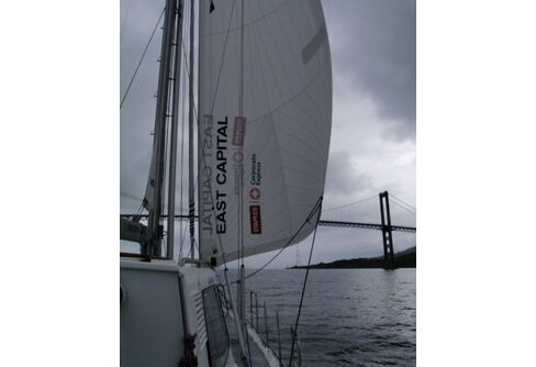 Grått, men så småningom fick vi på kvällen den utlovade medvinden. Äntligen, det var länge sedan. Glömde berätta att vi igår såg den gamla unionsflaggan på en "gräddhylla". Undrar vad som ...