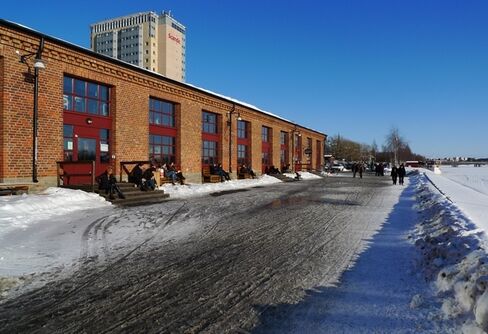 Folk som använder skatedelen av skidspåret som promenadväg.