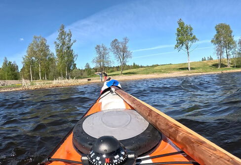 Det var lite mer sydligt motvind idag trots att jag låg i lä bakom halvön Björkön. Så det blev kortare idag trots lite mer paddel tid. Men det är bra ...
