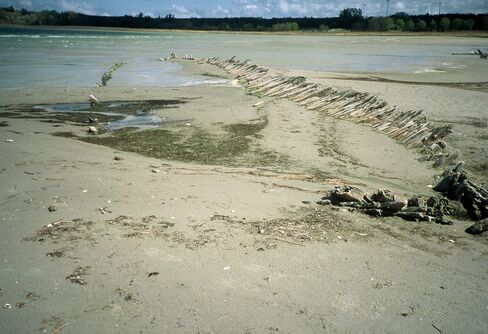 Sjunkna vrak. Båtskrov av gamla kalkskutor i badviken, Kappelshamn, Lärbro. 2023