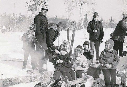 Det är jag längst till vänster. Bakom min gamle slöjdlärare Ragnar Morling, alltid snäll och uppmuntrande mot mig. Det är skidskola. Min gamle ...