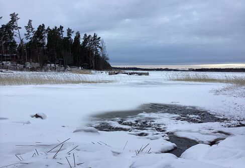 Vintern har slagit tillbaka med snöstorm i natt. Sitter vid turistbordet och äter min frukost vid åttatiden. Det blåser fortfarande friskt ...