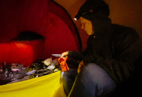 15 timmar i tältet. Jag hade glömt hur lång tid det är. Mörkret dominerar tillvaron. Det finns inte annat att göra än att hålla kylan borta. Ibland ...