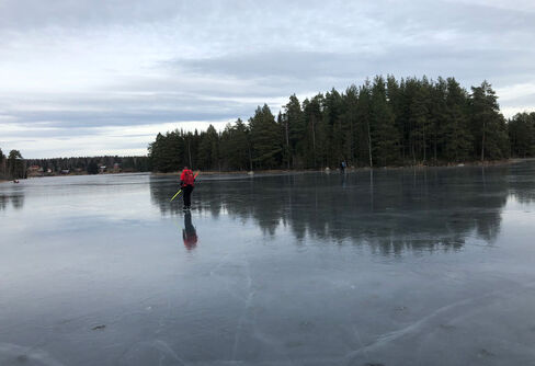 Den här vintern har snötäcket här i södra hälsingland varierat, snö har fallit och sen smält bort i flera omgångar. Skridskoisarna har varit fina ...