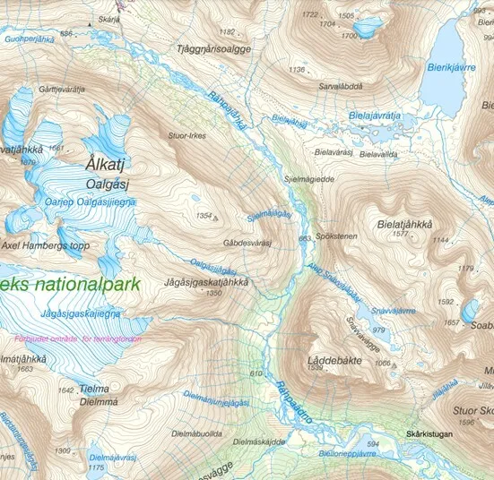 Jag började vandra i Sarek 1971. Det här inlägget är en återblick. Viktigast för mig var att vi fick den första topografiska kartan i december 1969. Innan dess fanns Generalstabskartan från slutet av 1800-talet som inte var tillräckligt detaljerad eller tillförlitlig för planering av turer. 1922 gav Axel Hamberg ut sin Sarekkarta som bilaga till hans bok SAREKFJÄLLEN VÄGLEDNING FÖR FÄRDER I HÖGFJÄLLEN MELLAN LULE ÄLVS KÄLLARMAR. Kartan är speciell och erbjuder än idag ett unikt perspektiv på Sareks storformer men för mig då, som aldrig hade gått i Sarek, var det inget jag vågade utgå från. Men så kom då den topografiska kartan 1969. Ni hittar dessa i järnvägsmuseet samlingar - Väghistoriska samlingen, skannat material, Topografiska Kartan samlingsportalen.se.
