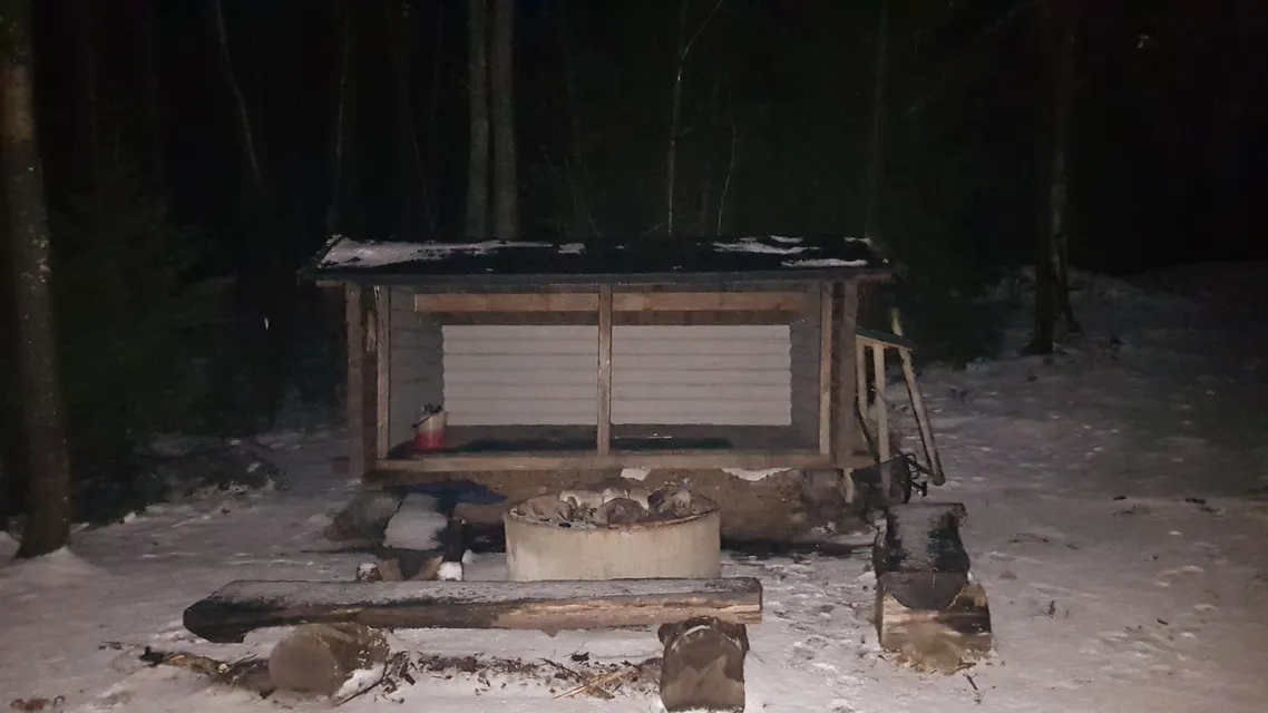 Övernattning i vindskyddet vid Trehörningen lite norr om Domarudden