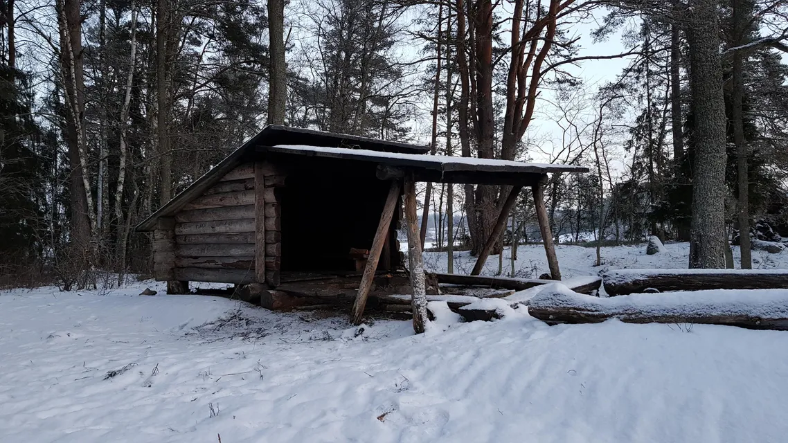 2019 års första utenatt blev i början av veckan i vindskyddet vid Fjäturens sydöstra spets. Väldigt förvånad blev jag när jag senare fick sällskap av en annan person som också tänkt sova där. En måndagskväll i januari, vad är oddsen? Mkt trevligt sällskap var det dock. Inte så kallt för årstiden, bara -3.6 som kallast under natten. En bra övernattningsplats väldigt nära civilisationen. Hade det inte varit för ljuden från motorvägen kunde man trott att man var någon helt annanstans mkt mer avlägset staden än det faktiskt är.