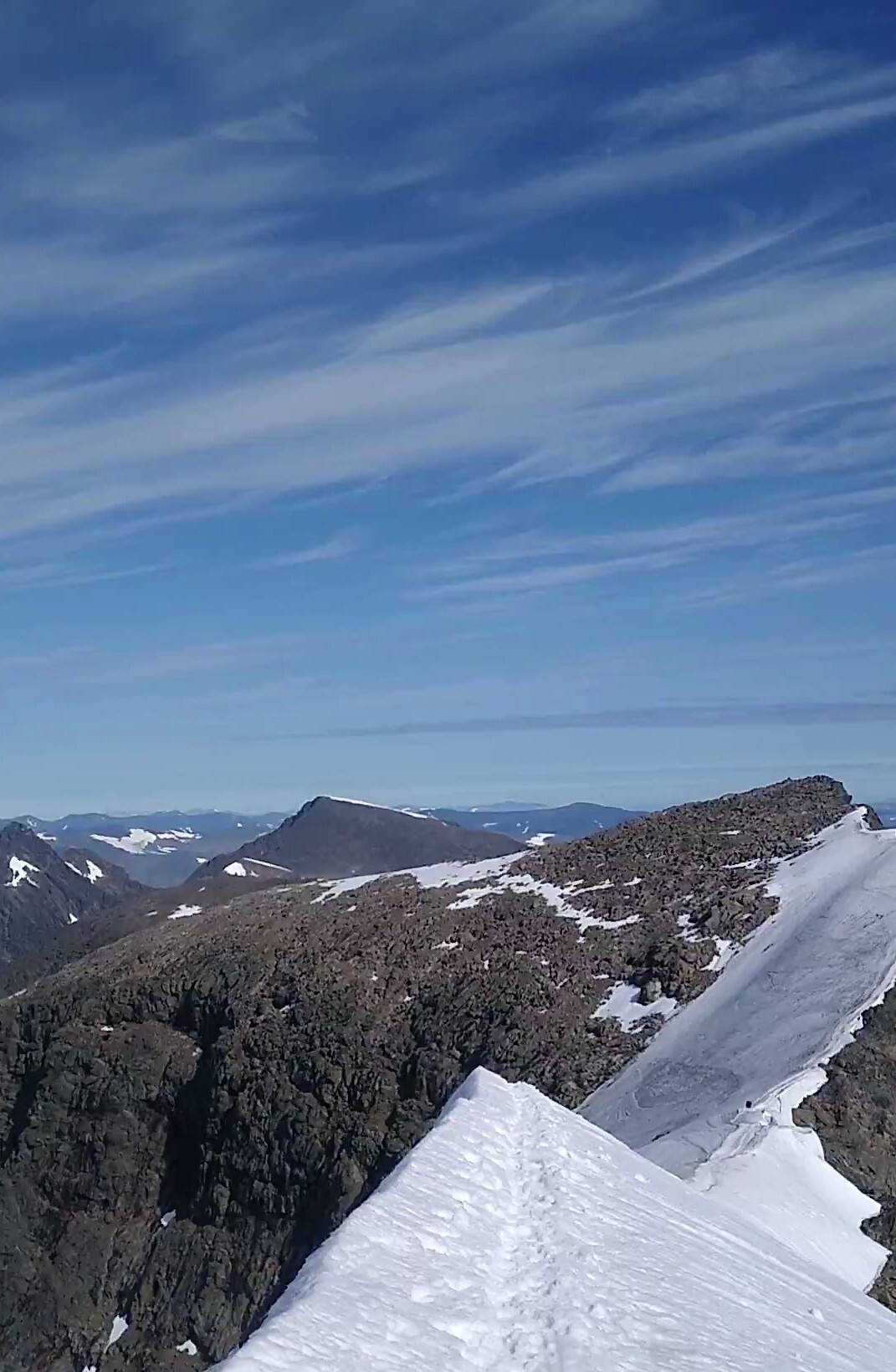 Uppe på Vierranvárri möter vi, förutom de hundratals vassa stenrösen som bekläder toppen, en höjdrädd Göteborgare som under dagens vallfärd till Sydtoppen har valt att se sin rädsla i vitögat och ge sig upp till Sveriges näst högsta punkt. Imponerande och motiverande.