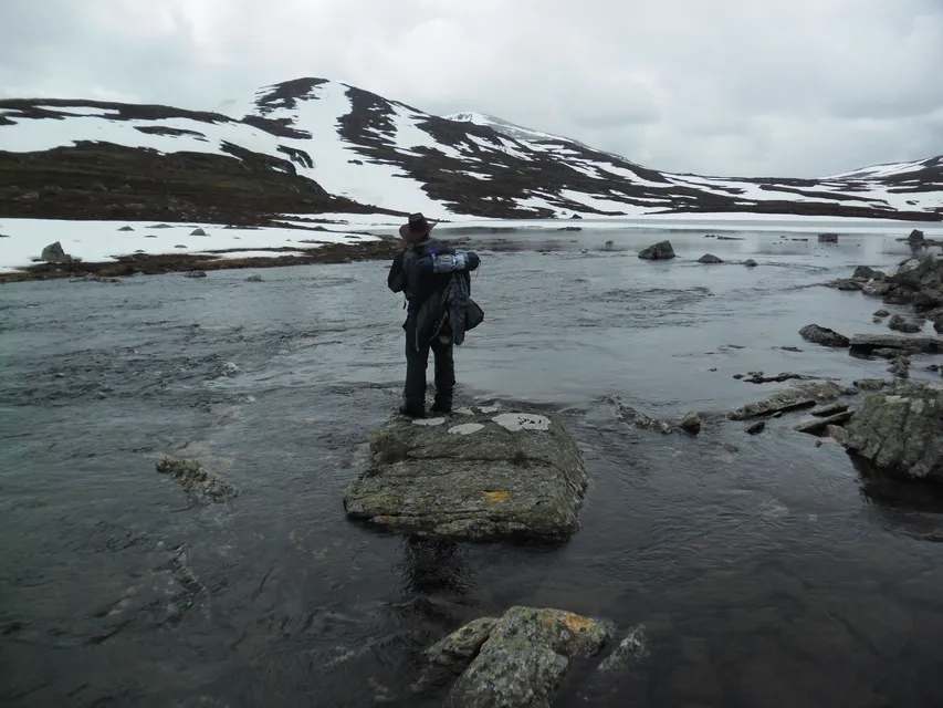 Ett steg framåt över snön. Ett till. Knakade det inte lite konstigt? Det där dånande ljudet, kom det verkligen från dalgången, eller var det i själva verket RAKT UNDER våra fötter? Det här är del 3 i berättelsen om min och brorsans vårflodsvandring som i del 1 gick genom Storådörren och i del 2 från Tronndalen till Vålåstugorna där vettiga vandrare (inte vi) vände om och gick hem. Del 2 avslutades med att ingen visste hur det skulle gå för oss och om vi någonsin skulle komma fram. Det är nu olidligt spännande!