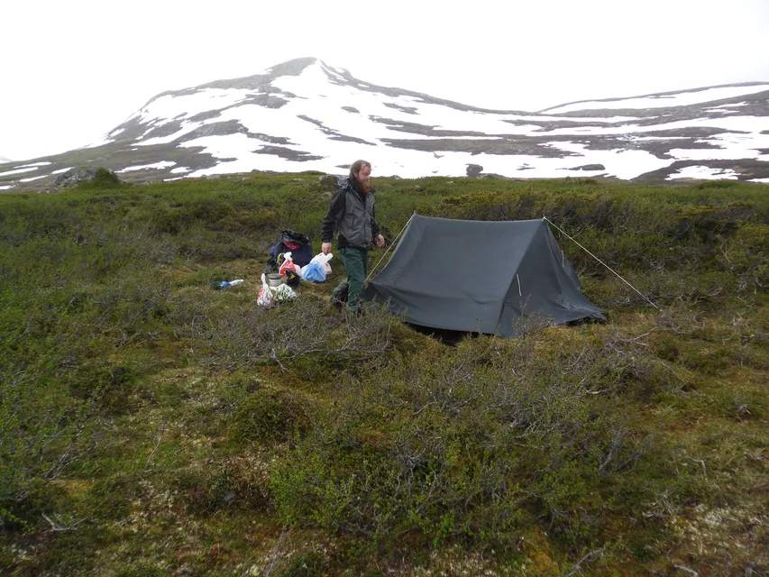 Jag var så färdig med fjället. Jag har sällan trampat så i motvind och aldrig kommit fram. Allt var tålamodsprövande och jobbigt. Mat var vi tvungna att stanna och laga också. Om vi bara kunde skippa hungern, törsten, de trötta fötternas behov av någon minuts vila ibland och bara gå! Komma fram!