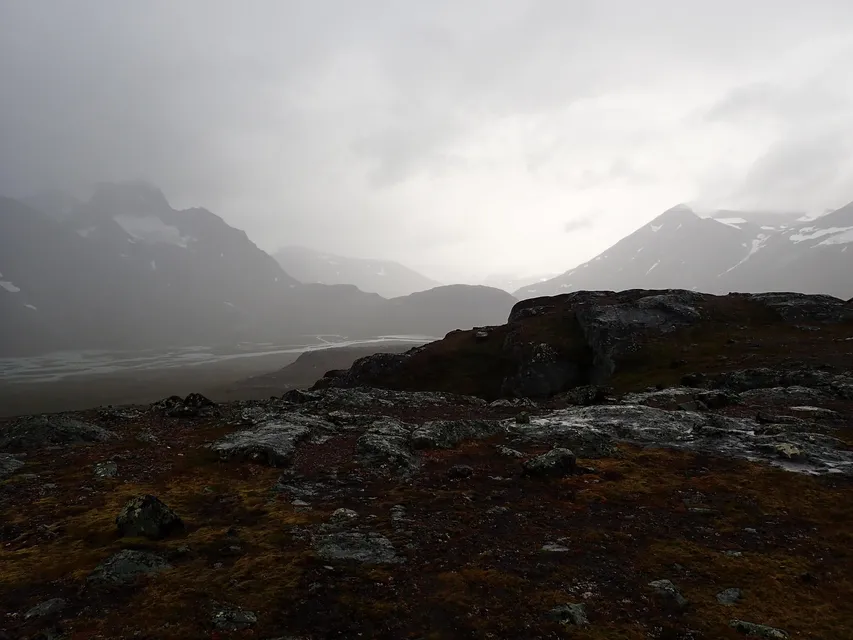 Jag drog en lättnadens suck att Snávvávágge låg bakom mig. Passet utgjorde uppenbarligen ett mycket populärt besöksmål, men också en passage som det är svårt att undvika för den som färdas in eller ut ur Rapadalen. Nu såg jag fram emot att få vara kreativ och fri och bara ta ut min egen stiglösa kurs under resten av vandringen.
