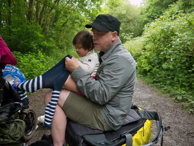 Vi har nu knallat och skjutit barnvagnen i 42 mil under 5 veckor. 9 punkteringar, 40 kg i skjutningsmotstånd inklusive Dana och det har för det mesta varit som en sorts aktiv semester. England är ju ett ganska enkelt land att färdas i. Vädret inte för extremt åt något håll, ja, vi har i stora drag haft sol hela tiden, vilket i sig är ganska unikt, trafiken ganska van udda fordon som vårt och vi hittar något att äta överallt. Allting ganska medel utan alltför mycket drama.