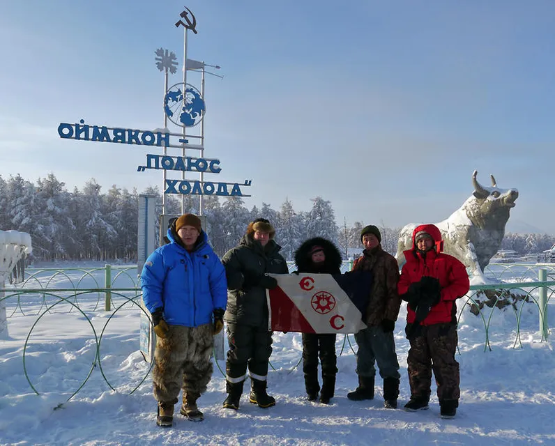 Termometern visade 59 minusgrader. Så kallt att när jag andades så hördes ett pipande ljud och bredvid mig stod min fotgraf Yura Stepanovich och rosslade. Plötsligt sköt hans andedräkt ut som ett moln av små iskristaller. Samma morgon hade jag gått på ute toaletten i Uchugay, där vi hade vårt läger i väntan på att vi skulle få tag på alla grejer innan avfärd, med en kopp hett te i handen. Jag hade kastat uppdet i luften och det kom ner som iskristaller i mörkret. oerhört vackert, men iskallt. Dock inte i närheten av den rekord temperatur som mättes 6 februari 1933, 67.7 grader. Vilket gör Ojmjakon till den kallast bedodda platsen i världen. Bara på en foskningsstation i Vostok på Antarktis har lägre temperaturer mätts.