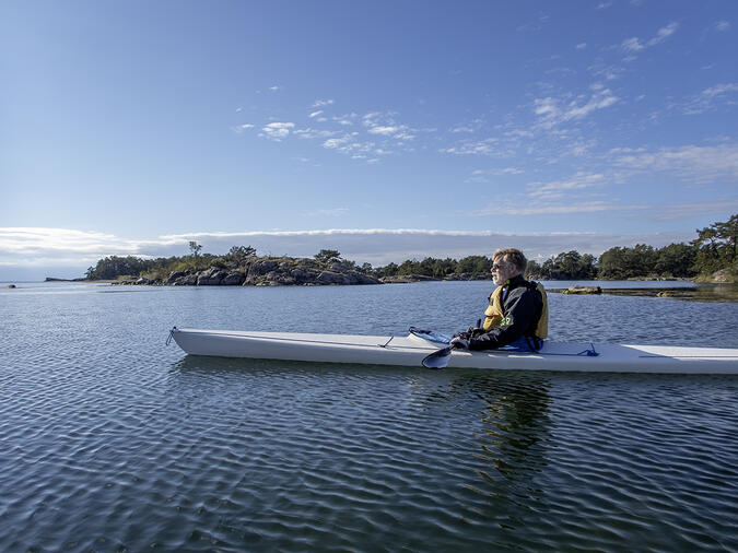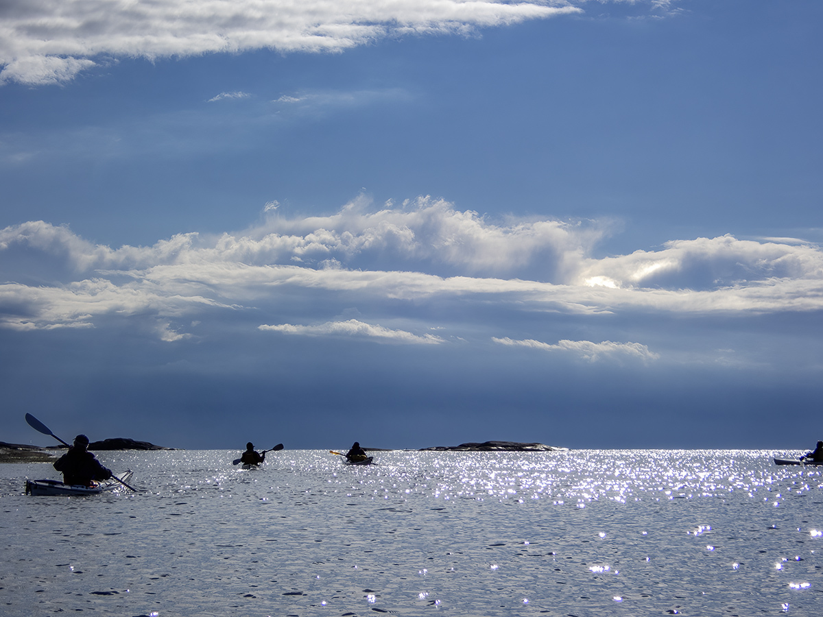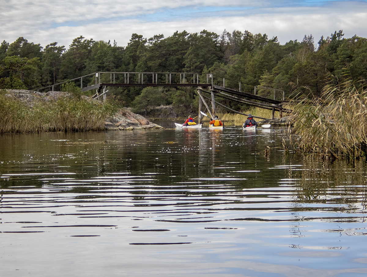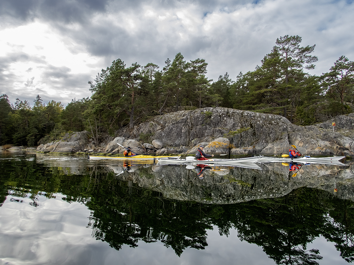 Egentligen finns det tre sorters kajakpaddlare. De som gillar utmanande vågor, de som föredrar lugna farvatten och de som gillar både och. Jag tillhör sistnämnda gruppen. Troligen gäller det även för de andra som jag paddlat med varje höst sedan millenieskiftet. Vi tar väder och vatten som det kommer. Och alltid sticker vi ut i oktober. Från början var det jämnt sista helgen i den månaden som gällde. Färden skulle vara käck och kärv på senhöstars vis. Ett obligatoriskt dopp var påbjudet i det ofrånkomligt kalla vattnet och korta dagsljuset. Sedan två år har vi ändrat stuket en aning. Nu gör vi turerna i början på oktober och får därmed lite mera dagsljus. Och det sedvanliga doppet har blivit valfritt efter behag. Det märks att gossarna blivit äldre på gamla dar.