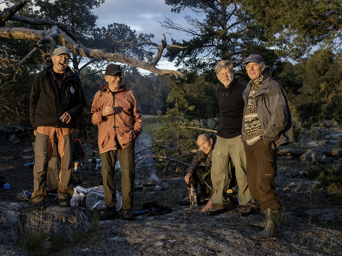 Skärgården visade upp sig från sin bästa sida. Aldrig blir den så vacker som stilla höstdagar med vattenytor i bleke. Tystnaden var fulländad. Inga båtar hördes, inget flygplan brummade i skyn, inget tätortslarm nådde hit ut från fastlandet. Det enda naturliga ljudet som viskades fram var ett svagt kluckande från stränderna där vattnet sakta rörde sig trots vindens frånvaro. Jag behöver knappast tillägga att ödsligheten kändes total, ända tills någon i gänget drog ett skämt och alla flabbade högljutt. Det hör också till dessa turer.