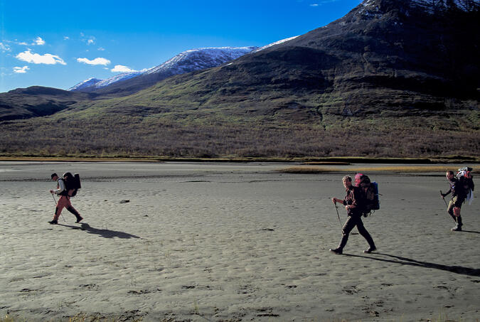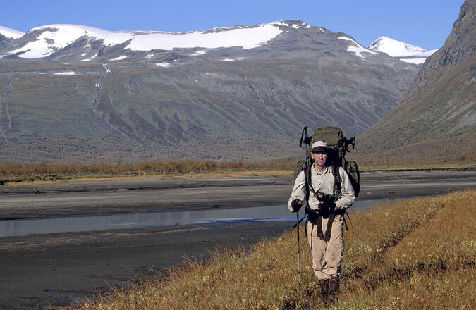 Här går jag i Rapaselet 1991 med den tidens stora ryggsäckar. Foto: Björn Esping.