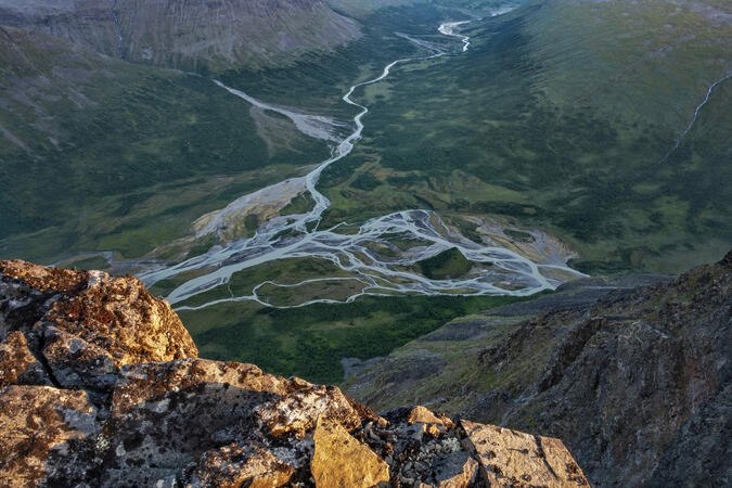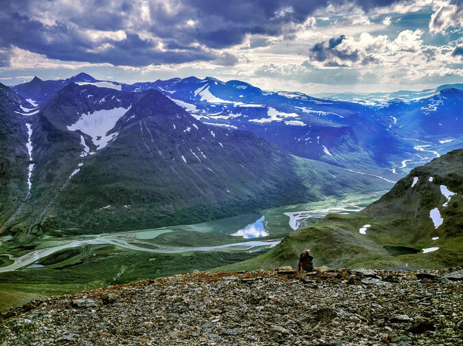 Från toppen Soabbetjåhkkå får man en annan vinkel på det mäktiga landskapet.