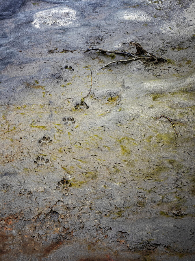 Ett lodjur har lämnat sina trampspår i Ráhpaädnos strandbankar.