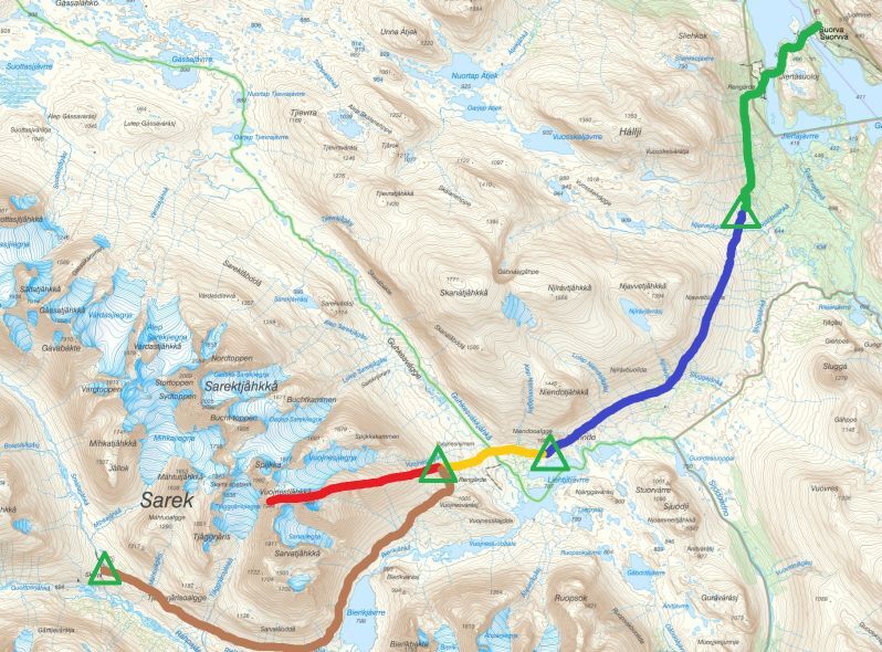 Men avgörande för att överge ursprungsplanen är att det inte är läge för en tur upp på Sarektjåhkkå. Även om det finns massor med tid på papperet tänker jag inte ligga i tältet och trycka flera dagar för något som bara kanske går att genomföra.