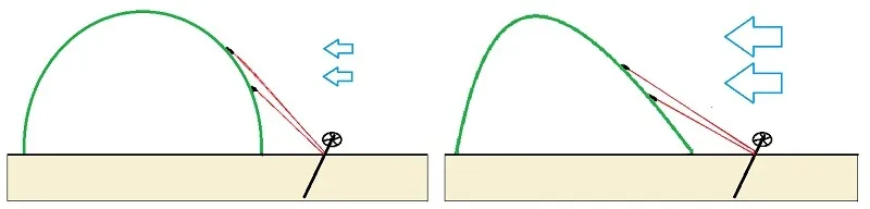 Det var på vindsidan och från huvudändans absid som de egendomliga ljuden kom. Jag drog upp innertältets blixtlås några decimeter och kikade ut. Yttertältet var öppet på den sidan och fladdrade i blåsten. Vinden hade alltså dragit upp blixtlåset nästan ända upp och våra köksattiraljer var begravda under ett lager snö. Det hade även lassats upp en massa snö runt öppningen så jag fick fösa undan för att kunna dra ner dragkedjan igen och knyta fast handtaget med en snörstump. Efter en stund hade vinden dragit upp knuten så proceduren fick göras om mer noggrant. Jag band fast snöret i en ögla i tältbotten.*)