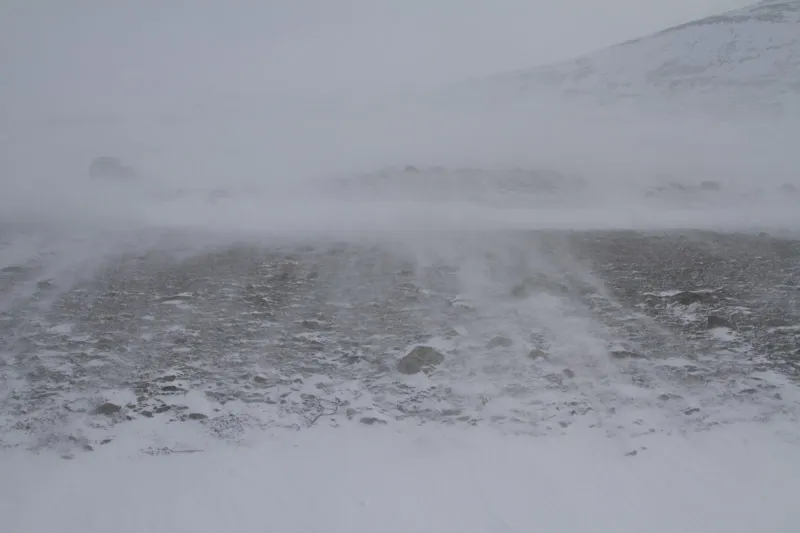Jag var ute ur tältet först. Vinden hade ökat utan att vi lagt märke till det och det kändes väldigt kallt. Men det berodde inte på temperaturen, den var nära noll grader. Det var vindens kyleffekt. Blåsten var kraftig.