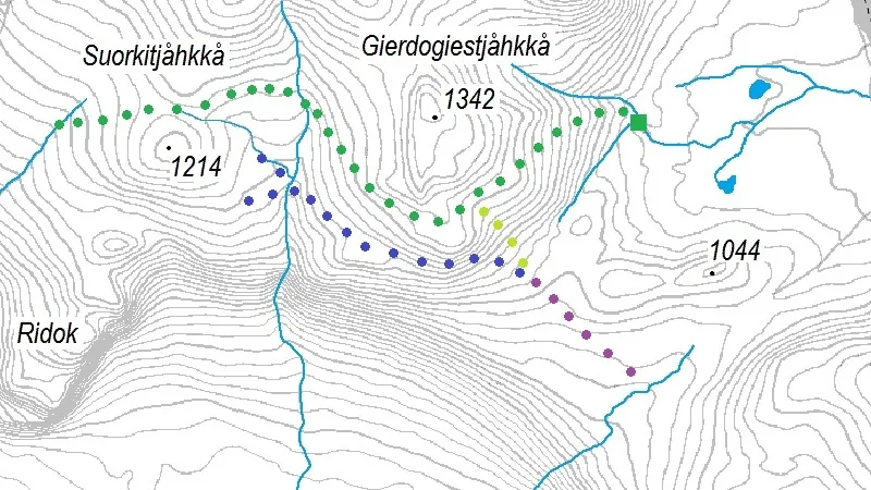 Det var tisdag och det var den 12 juli. Utanför tältet på vår lägerplats ovanför renvaktarstugan var det blåsigt och tidvis regn. Mattias gjorde en gedigen diskinsats med gårdagens och förmiddagens disk.